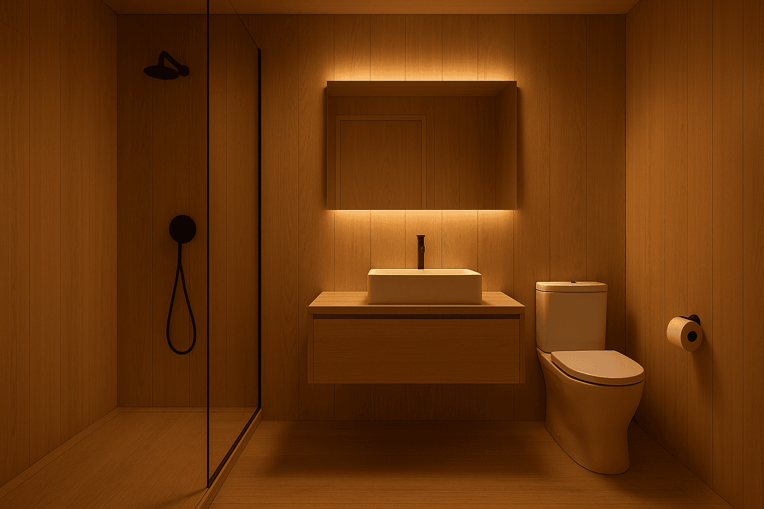 Architecturally, Elevate Split Retreat balances innovation with comfort. Its design features stacked volumes, clean geometry, and a thoughtful division between public and private spaces. The white façade is softened by wood accents and expansive glazing, letting in light while framing views of the surrounding landscape.